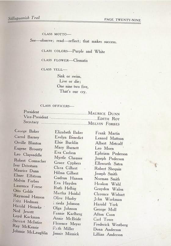 | | Page 29 George Baker, Carrol Barney, Orville Blanton, Eugene Brounty, Leo Clapsaddle, Robert Connacher, Iver Drivstuen, Maurice Dunn, Elmer Elfstrom, Melvin Forbes, Laurence Freese, Otto Golde, Raymond Hanson, Fritz Hedman, Harold Hemeke, Ned Jewett, Lloyd Kackman, Stewart McIntire, Ray McKensie, Johnnie McLaughlin, Elizabeth Baker, Evelyn Bennedict, Elsie Bucklin, Mary Burnett, Eva Carlson, Myrtle Chausee, Grace Cyphers, Clara Gilbert, Hilma Gilbert, Gudrun Hansen, Eva Hyden, ruth Helbig, Martha Hoidal, Olive Husby, Frieda Johnson, Olga Johnson, Fannie Karlberg, Annie McBride, Florence Meyer, Ruth Miller, Jennie Minnick, Frank Martin, Lenard Mattson, Albert Metcalf, Leo Moen, Ephriam Pederson, Joseph Pederson, Ellsworth Satra, Robert Shequin, Joseph Smith, Norman Smith, Haakon Wahl, Graydon Walen, Clarence Wishart, John Workman, Harold York, George Moll, Afton Coon, Carl Towe, Frederick Westberg, Dona Anderson, Lillian Anderson