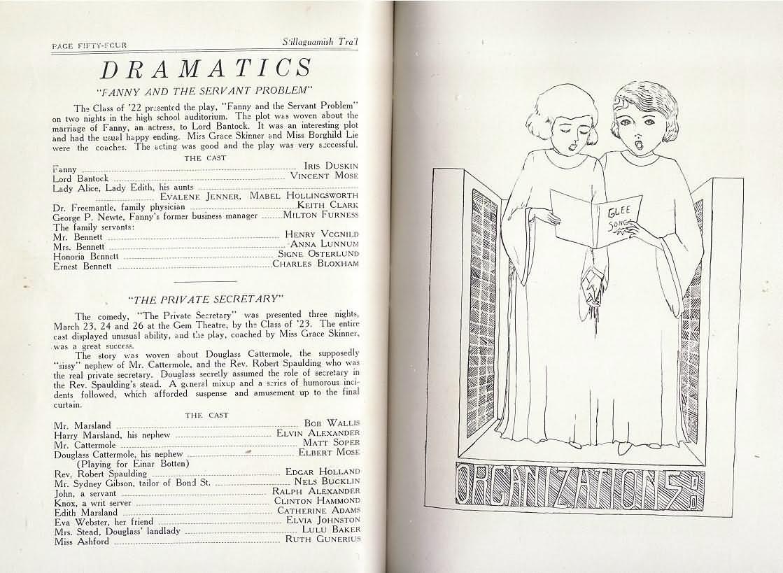 | | Pages 42 and 43 Robert Forbes, Wallace Gregory, Blanch Holton, Nina Husby, Gerald Hoseason, Robert Johnstone, Duncan Jacobson, Antonia Kratz, Victoria Larson, Rose Morrell, Lief Ness, Oliver Nysether, Bernard Nysether, Clarence Roose, Nora Reese, Lyle Shaffer, Lenore Schoenheit, Marguerite Van Dyke, Ardis Van Allen, Roy Snoddy, Everett York, Iris Duskin, Ed. Montroy, Ivy Furness, Allen DeSoucy, Eva Krauskoff, Harold Underwood, Katherine Gray, Helen Johnson, Charles Bloxham, Mabel Hollingsworth, Milton Furness, Howard Caswell, Mabel Nysether, Henry Vognild, Pearl Kyle, Harold Ottem, Emily Kronholm, Wesley Forbes, Myrtle Rod, Vincent Mose, Glenna Wishart, Keith Clark, Beulah Griep, Signe Osterlund, Evalene Jenner, Audree Grant, Anna Lunnum