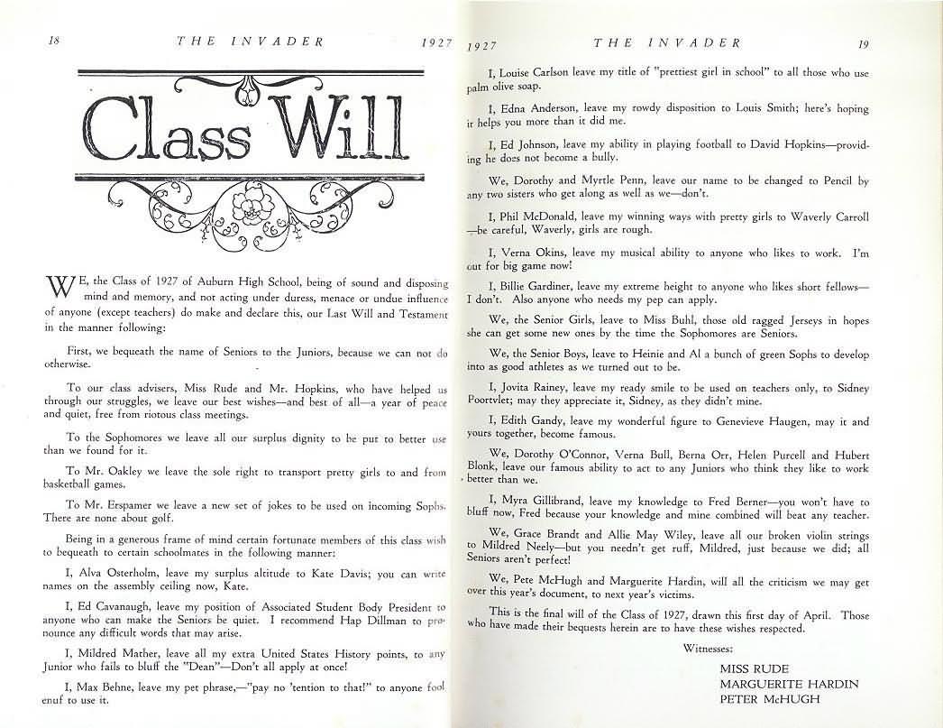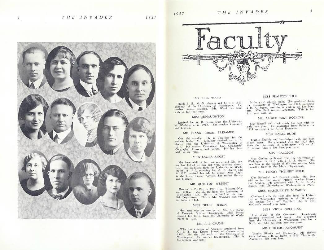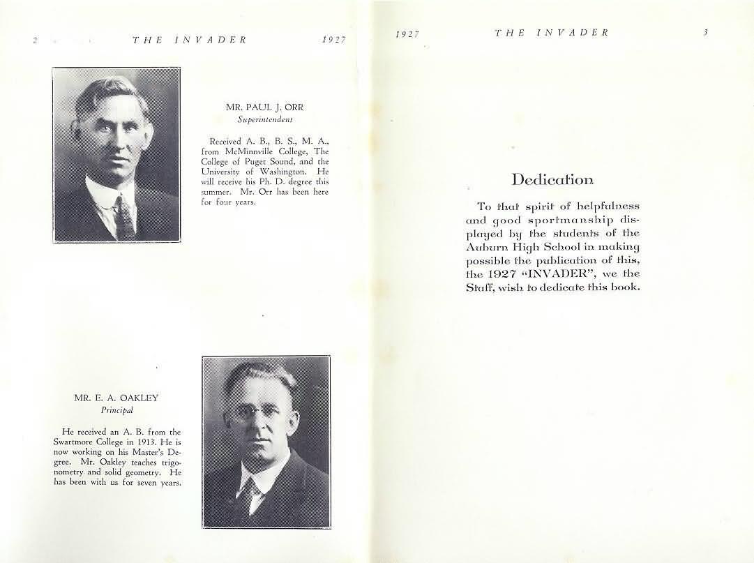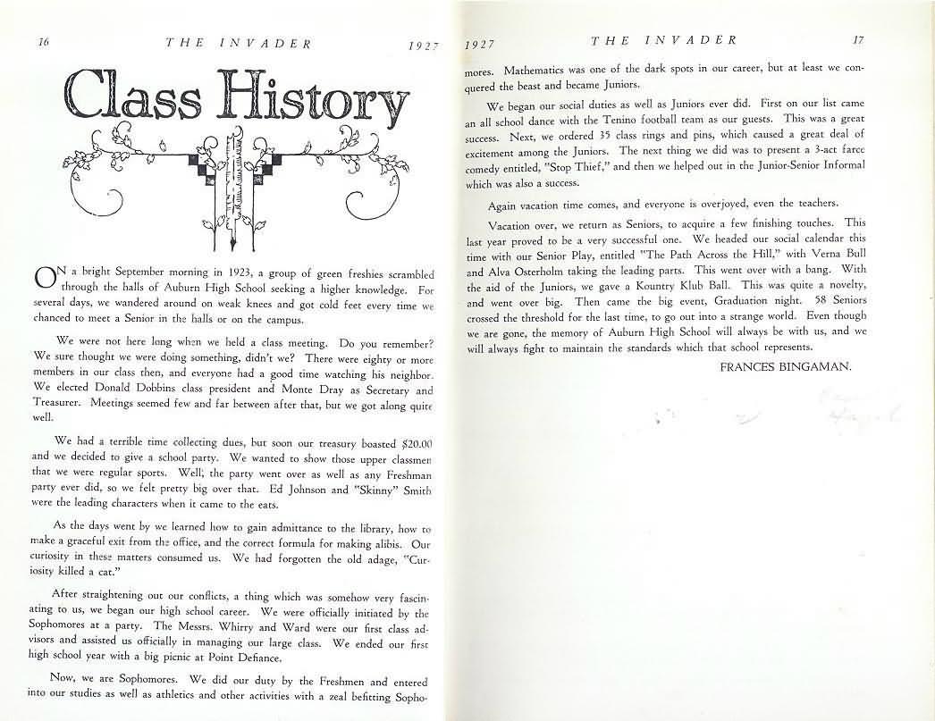 | AUBURN HIGH SCHOOL Auburn Washington 1927 The Invader