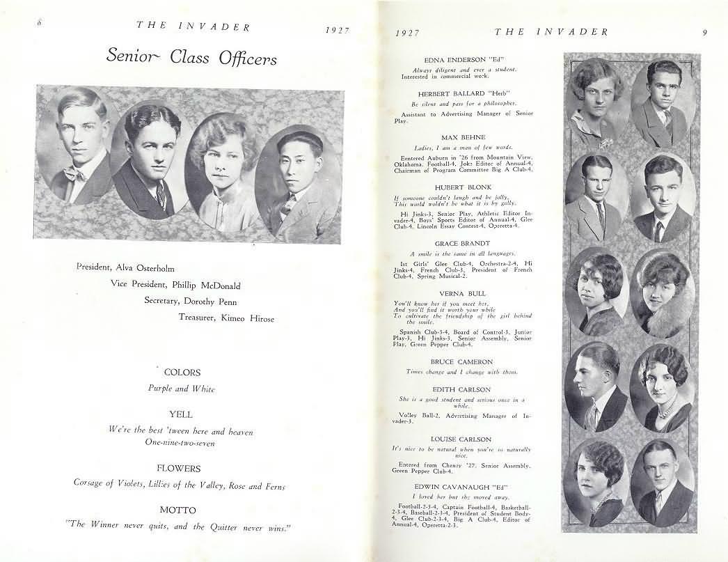 | | Pages 8 and 9 Alva Osterholm, Phillip McDonald, Dorothy Penn, Kimeo Hirose, Edna Enderson, Herbert Ballard, Max Behne, Hubert Blonk, Grace Brandt, Verna Bull, Bruce Comeron, Edith Carlson, Louise Carlson, Edwin Cavanaugh