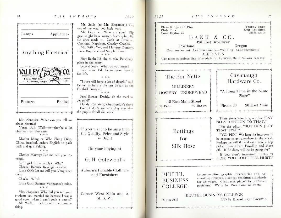 | AUBURN HIGH SCHOOL Auburn Washington 1927 The Invader