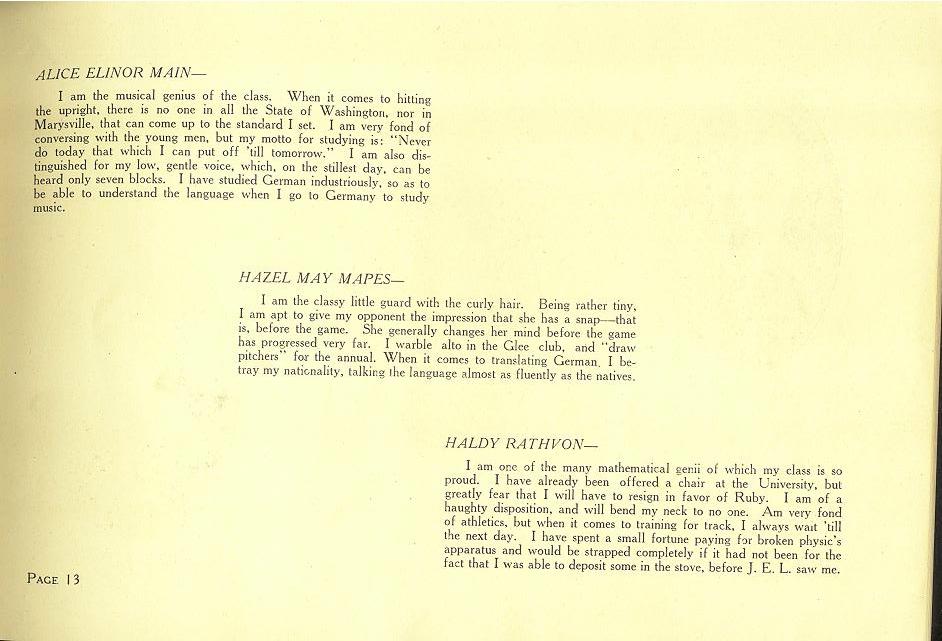 Alice Elinor Main, Hazel May Mapes, Haldy Rathvon