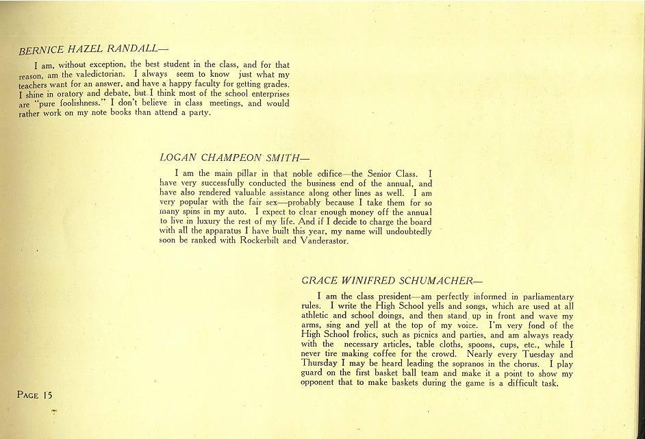 Bernice Randall, Logan Champeon Smith, Grace Winifred Schumacher