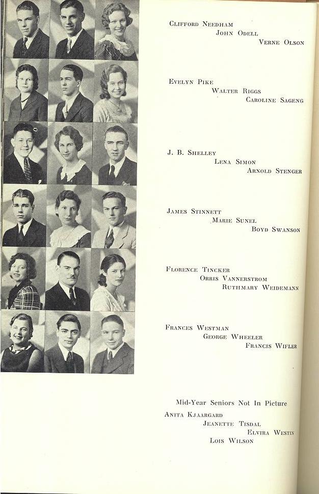 Clifford Needham, John Odell, Verne Olson, Evelyn Pike, Walter Riggs, Caroline Sageng, J. B. Shelley, Lena Simon, Arnold Stenger, James Stinnett, Marie Sunel, Boyd Swanson, Florence Tincker, Orris Vannerstrom, Ruthmary Weiderman, Frances Westman, George Wheeler, Francis Wifler, Anita Kjaargard, Jeanette Tisdal, Elvira Westin, Lois Wilson