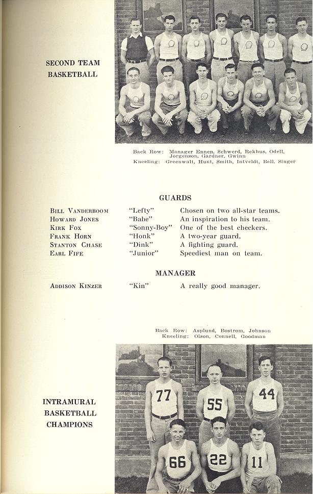 George Johnson, Lloyd Craine, Bill Walters, Rudy Kappel, Ralph Ohse, Bill Brisbie, Otto Johnson, Gilbert Kvam, Maurice Bailey, Bill Vanderboom, Howard Jones, Kirk Fox, Frank Horn, Stanton Chase, Earl Fife, Addison Kinzer
